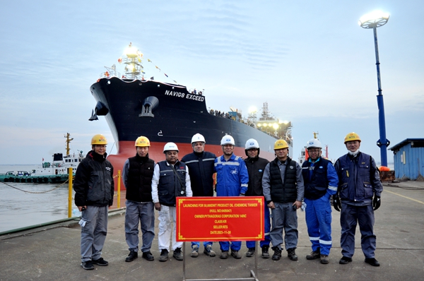 On November 30, 2023, the launching of one 50,000 DWT PRODUCT OIL/CHEMICAL TANKER bearing builder's hull no.0405047 has been carried out successfully by New Times Shipbuilding Co., Ltd.. The representatives from shipyard, N8 Assistant Manager Mr. Sunil together with the representatives from KR classification society attended and witnessed this event.