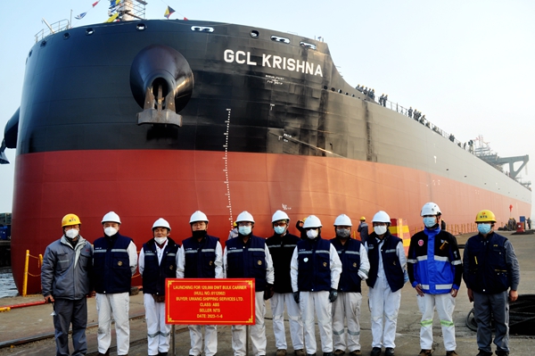 On January 6, 2022, the launching ceremony of one unit of 120,000 DWT Bulk Carrier bearing builder's hull no. 0112002 has been carried out successfully by New Times Shipbuilding Co., Ltd. Our CEO Mr. Liu Haijin, Executive Deputy General Manager Mr. Zhang Yuyong, the representatives from MITTAL site office and ABS classification society attended and witnessed the ceremony together.