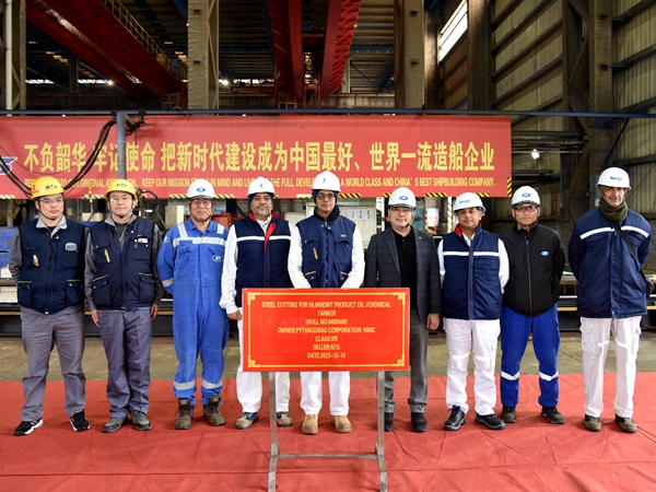 On December 15, 2023, the steel cutting of one 50,000 DWT Product Oil /Chemical Tanker bearing builder's hull no.0405049 has been carried out successfully by New Times Shipbuilding Co., Ltd..The representatives from shipyard, N8 Site Manager Mr. Kumar together with the representatives from KR classification society attended and witnessed this event.