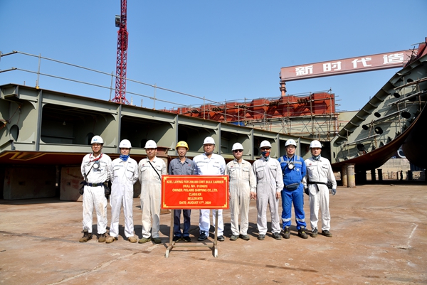 On August 17, 2020, the Keel Laying Ceremony of No.20 208,000 DWT Bulk Carrier has been carried out successfully by New Times Shipbuilding Co., Ltd. General Manager Assistant Mr.Ding Baiying from New Times Shipyard, Mr.Han Min Goo from Owner POLARIS and Mr.Huang Chengji from Class KR attended and witnessed the ceremony together.