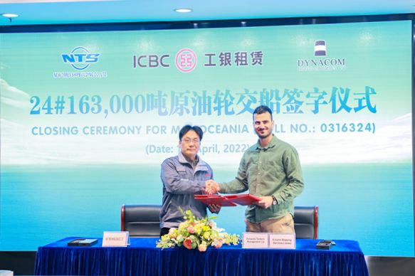On April 18, 2022, the closing ceremony was held at the meeting room on 8th floor of New Times Office Building for one unit of 163,000 DWT Crude Oil Tanker named " OCEANIA" with Builder's Hull No.0316324 that was built for Dynacom Tankers Management. Our CEO Mr. Liu Haijin, Executive Deputy General Manager Mr. Zhang Yuyong and Site Manager Mr. Michail Papadopoulos attended this ceremony. The vessel was smoothly and successfully delivered by us and accepted by the Owner.
