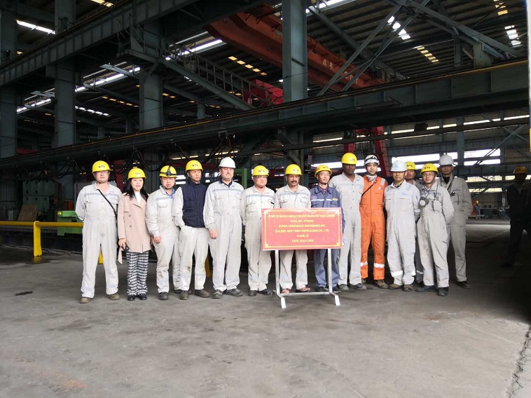 On 6 May, 2019, the block fabrication of No.5 208,000DWT Bulk Carrier was carried out at the cutting workshop of NTS. Our General Manager Assistant Mr. Ding Baiying and representatives from the owner FRONTLINE and LR classification society attended this event.
