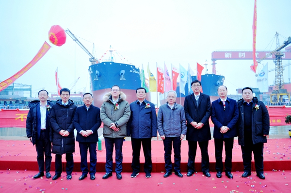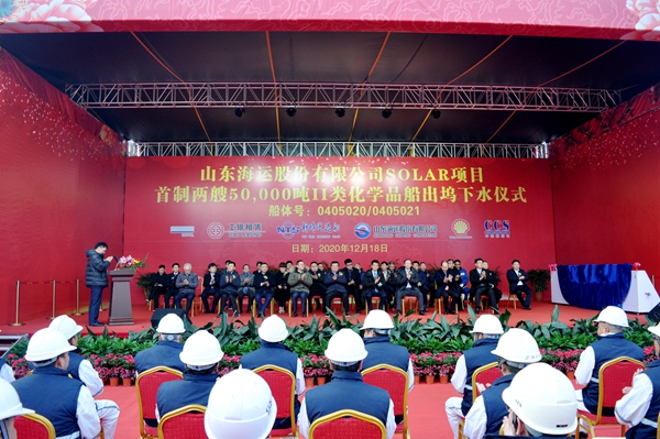 On December 18, 2020, the Launching Ceremony of No.20 & 21 50,000 DWT Product Oil/Chemical Tankers was held ceremoniously by New Times Shipbuilding Co., Ltd. Our Chairman Mr. Yuan Kaifei, Chairman of Shandong Shipping Corporation Mr. Yu Bing, Vice Mayor of Jingjiang City Mr. Zhao Jianguo and guests from all parties attended and witnessed the ceremony together.