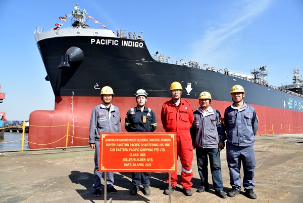 On April 26, 2025, the launching ceremony of one 50,000 DWT Chemical/Product Oil Tanker bearing builder's hull no.0405056 has been carried out successfully by New Times Shipbuilding Co., Ltd. The representatives from EPS Site Office, ABS classification society and shipyard attended and witnessed the ceremony together.