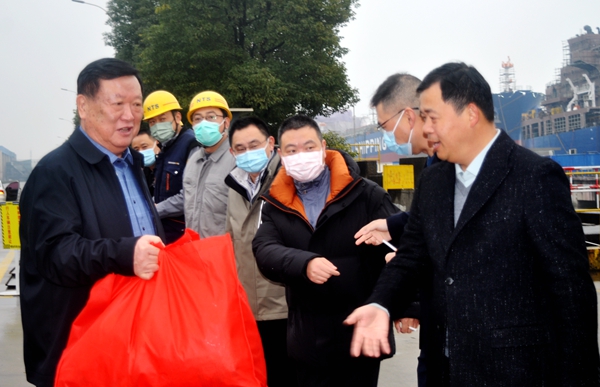 1月22日,癸卯農(nóng)歷大年初一上午9時許,公司領(lǐng)導(dǎo)袁凱飛、朱炳康、劉海金、周燦榮、張玉永、袁衡、杜江、鄭忠、徐震宇、劉鋒一行先后來到西區(qū)北門、東區(qū)碼頭2#引橋、新區(qū)空壓機房、新區(qū)1#食堂、新區(qū)中大門,看望、慰問新春佳節(jié)依然在寒冬中堅守崗位、默默工作的員工同志們,祝愿大家身體健康、闔家幸福,鼓勵大家以飽滿的熱情、戰(zhàn)斗的姿態(tài)為各項工作的全面完成做出新的貢獻(xiàn)。