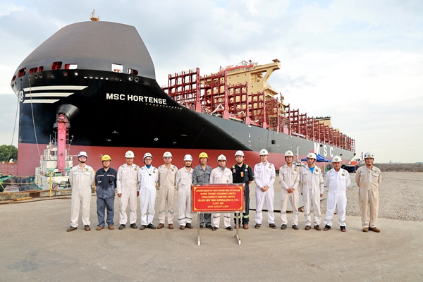 8月7日、8日,公司2#塢、3塢區(qū)域,船舶下水各項(xiàng)工作有序進(jìn)行,2#3#4#11400箱LNG雙燃料動(dòng)力集裝箱船在海事拖輪的牽引下,先后駛出船塢,如期實(shí)現(xiàn)下水大節(jié)點(diǎn)目標(biāo)。