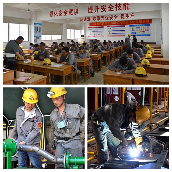 技能比武大賽共分為基礎(chǔ)理論和實(shí)踐操作競(jìng)賽兩大項(xiàng)目,為開(kāi)展好技能比武大賽,賽前制定了實(shí)施方案,明確了活動(dòng)流程、評(píng)分規(guī)則、競(jìng)賽紀(jì)律、考評(píng)要求、成績(jī)公示和獎(jiǎng)勵(lì)措施等辦法和要求。6月22日下午,機(jī)裝部、甲裝部和居裝部等部門(mén)共39名選手參加了船舶管工理論知識(shí)競(jìng)賽。理論競(jìng)賽完畢后,隨即開(kāi)展了根據(jù)現(xiàn)場(chǎng)材料和設(shè)計(jì)要求,進(jìn)行放樣繪圖比賽。6月29日,在教育科西區(qū)培訓(xùn)場(chǎng)地,首批居裝部、甲裝部選手開(kāi)展了按圖校管和安裝的實(shí)踐操作比賽。為達(dá)到以賽促學(xué)的活動(dòng)效果,考評(píng)人員現(xiàn)場(chǎng)為選手作品進(jìn)行一一點(diǎn)評(píng),并進(jìn)行打分。7月6日,機(jī)裝部選手實(shí)踐操作比武如期舉行。