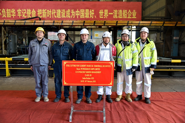2月10日上午,公司在東區(qū)鋼加車間舉行船舶點火開工儀式,73#73500噸油船船體結(jié)構(gòu)件開始切割預制。