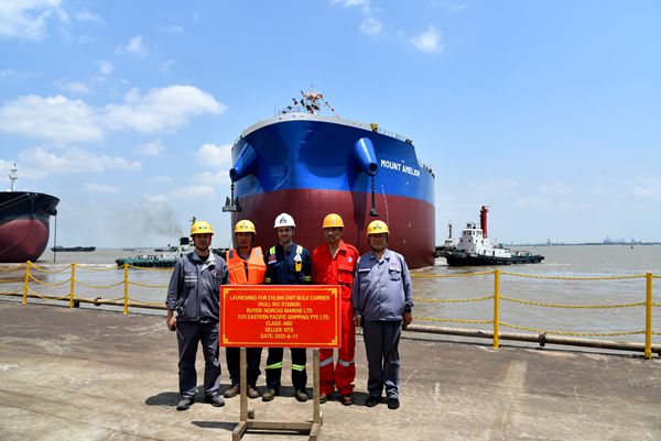 26#210000噸雙燃料散貨船、56#156500噸油船成功下水(圖)