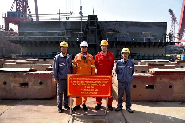 4月29日上午,公司在西區(qū)1#塢舉行船舶進(jìn)塢合攏儀式,58#50000噸Ⅱ類化學(xué)品船、56#115000噸油船船體結(jié)構(gòu)分段開(kāi)始搭載建造。
