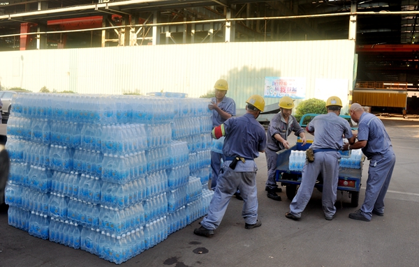 后勤部門積極做好后勤保障工作,隨時給一線員工提供舒適的就餐和歇息空間,為施工現(xiàn)場足量提供飲用水,同時為分段制造部等部門提供綠豆飲品,及時送至施工人員手中。