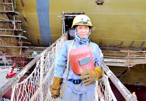孟秋艷同志走出船舶機(jī)艙