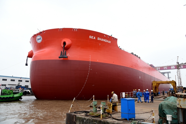 中午12:30,在建的4#325000噸超大型礦砂船在海事拖輪的牽引下順利駛出公司2#船塢,?恐留秆b碼頭,進(jìn)入了碼頭舾裝調(diào)試。