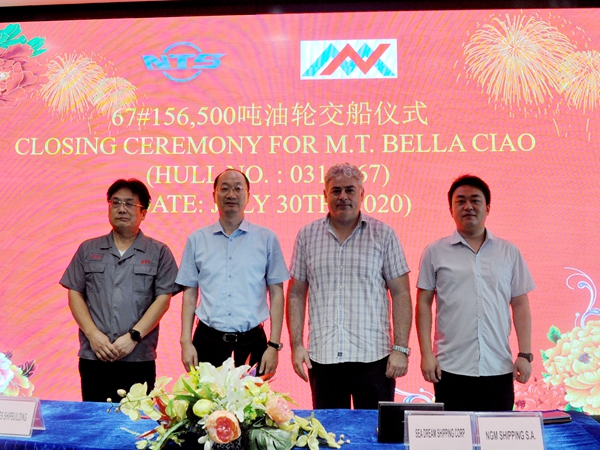 7月30日上午,公司在辦公樓八樓會議室舉行67#156500噸油船簽字交付儀式,公司總經(jīng)理劉海金、常務副總經(jīng)理張玉永與希臘船東NGM公司代表Nikitas先生共同出席儀式,常務副總經(jīng)理張玉永和Nikitas先生共同簽署交船文本,該船正式交付船東。