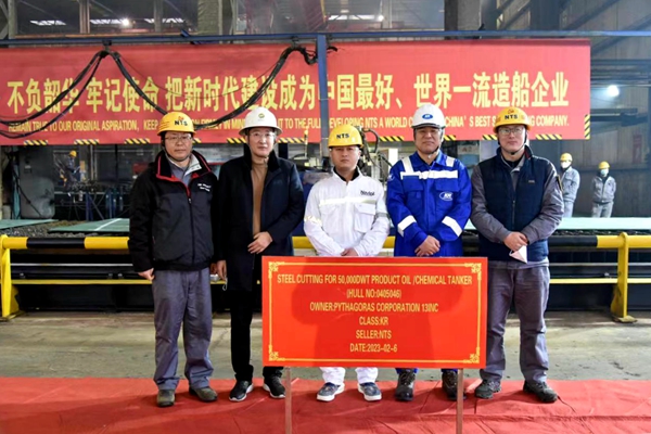 46#50000噸Ⅱ類化學品船的船東是新加坡船東Navig8,目前該船東在我們企業(yè)訂制了6艘50000噸Ⅱ類化學品船,今天開工的是第一艘船舶。35#50000噸Ⅱ類化學品船的船東是國銀租賃,該船東目前在我們企業(yè)訂制了10艘50000噸Ⅱ類化學品船。