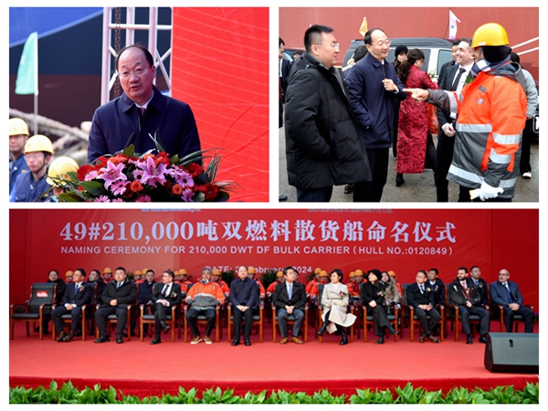 新春開工以來,公司全體員工秉持“開工即實(shí)干”的理念,迅速將激情化為行動(dòng)、用實(shí)干顯示決心,交出了一天兩船交付、兩船下水的新成績,讓新年“開門紅”跑出了“加速度”,又為2024年喜開新局獻(xiàn)上了一份隆重的賀禮。2月22日,3#7000箱集裝箱船完工交付、49#210000噸雙燃料動(dòng)力散貨船命名交付;4#7000箱集裝箱船、42#210000噸雙燃料動(dòng)力散貨船相繼下水,順利實(shí)現(xiàn)大節(jié)點(diǎn)目標(biāo)。