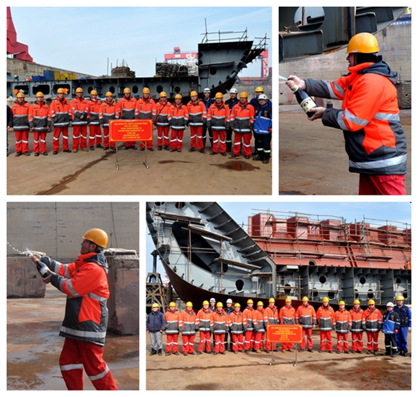 2月26日上午,公司在3#塢內(nèi)舉行船舶進(jìn)塢合攏儀式,6#7000箱集裝箱船、50#210000噸雙燃料動(dòng)力散貨船的船體分段開始合攏搭載。6#7000箱集裝箱船、50#210000噸雙燃料動(dòng)力散貨船同屬船東EPS公司,該公司目前在我們企業(yè)訂制了4艘110000噸油船、11艘210000噸雙燃料動(dòng)力散貨船、7艘7000箱集裝箱船、6艘50000噸化學(xué)品船和2艘155500噸雙燃料動(dòng)力油船,此次進(jìn)塢合攏的分別是7000箱集裝箱船、210000噸雙燃料動(dòng)力散貨船系列船中的第6、11艘船舶。