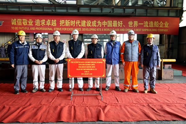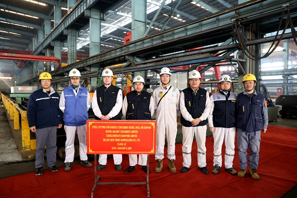 1月6日上午,5#6#8100箱雙燃料動(dòng)力集裝箱船開工點(diǎn)火儀式在新區(qū)鋼加車間舉行,生產(chǎn)管理部、質(zhì)量部、營銷部等部門負(fù)責(zé)人與船東CONGLOMERATE MARITIME LIMITED代表一起出席活動(dòng),見證兩艘船舶船體結(jié)構(gòu)件開始預(yù)制。