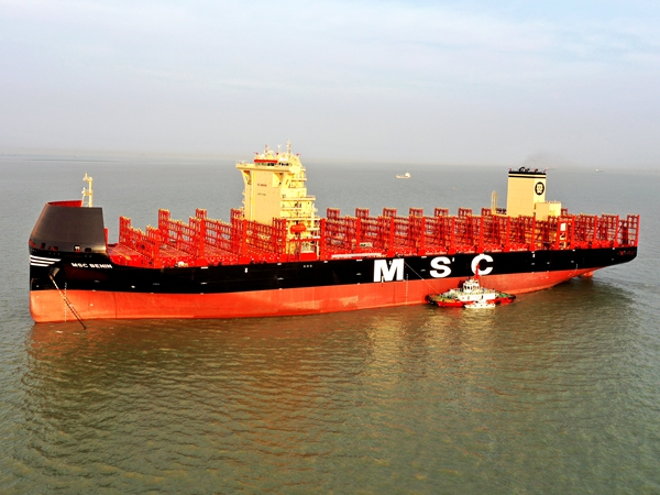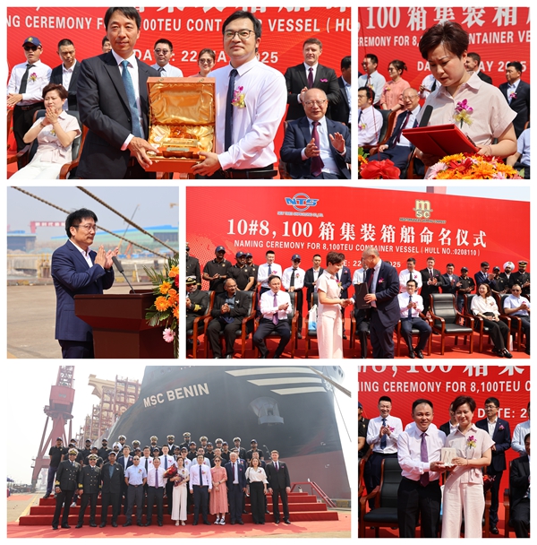 5月22日上午,公司舉行船舶命名儀式,10#8100箱LNG雙燃料動力集裝箱船成功命名為“MSC BENIN”號。