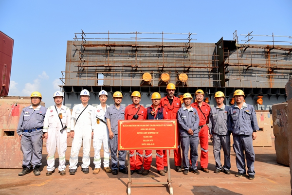 副總經(jīng)理朱韓鋼、總經(jīng)理助理丁柏英分別與兩船的船東代表共同出席活動(dòng),見證船舶開始合攏建造。