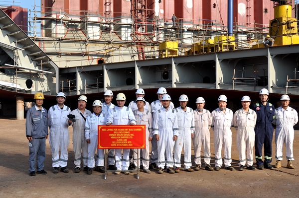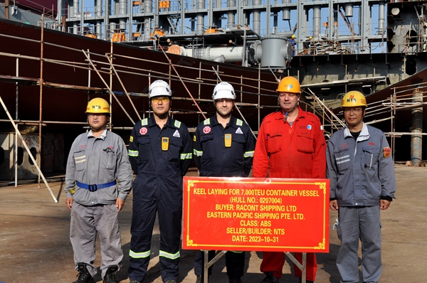 10月31日上午,公司在3#塢區(qū)域內(nèi)舉行船舶進(jìn)塢合攏儀式,42#210000噸雙燃料動(dòng)力散貨船、4#7000箱集裝箱船船體結(jié)構(gòu)分段搭載合攏工作正式開(kāi)始。